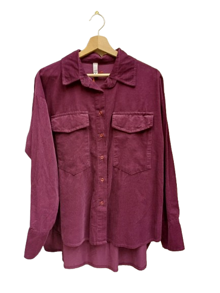 Camicia in vellutino a vpste manica lunga giro ampio, taschine sul petto e dietro piu lunga per vestire più taglie, prima sia portata over anche sopra magliette o sotto carrigancioni