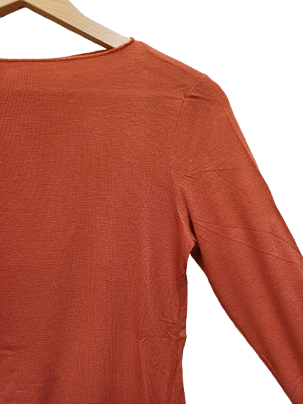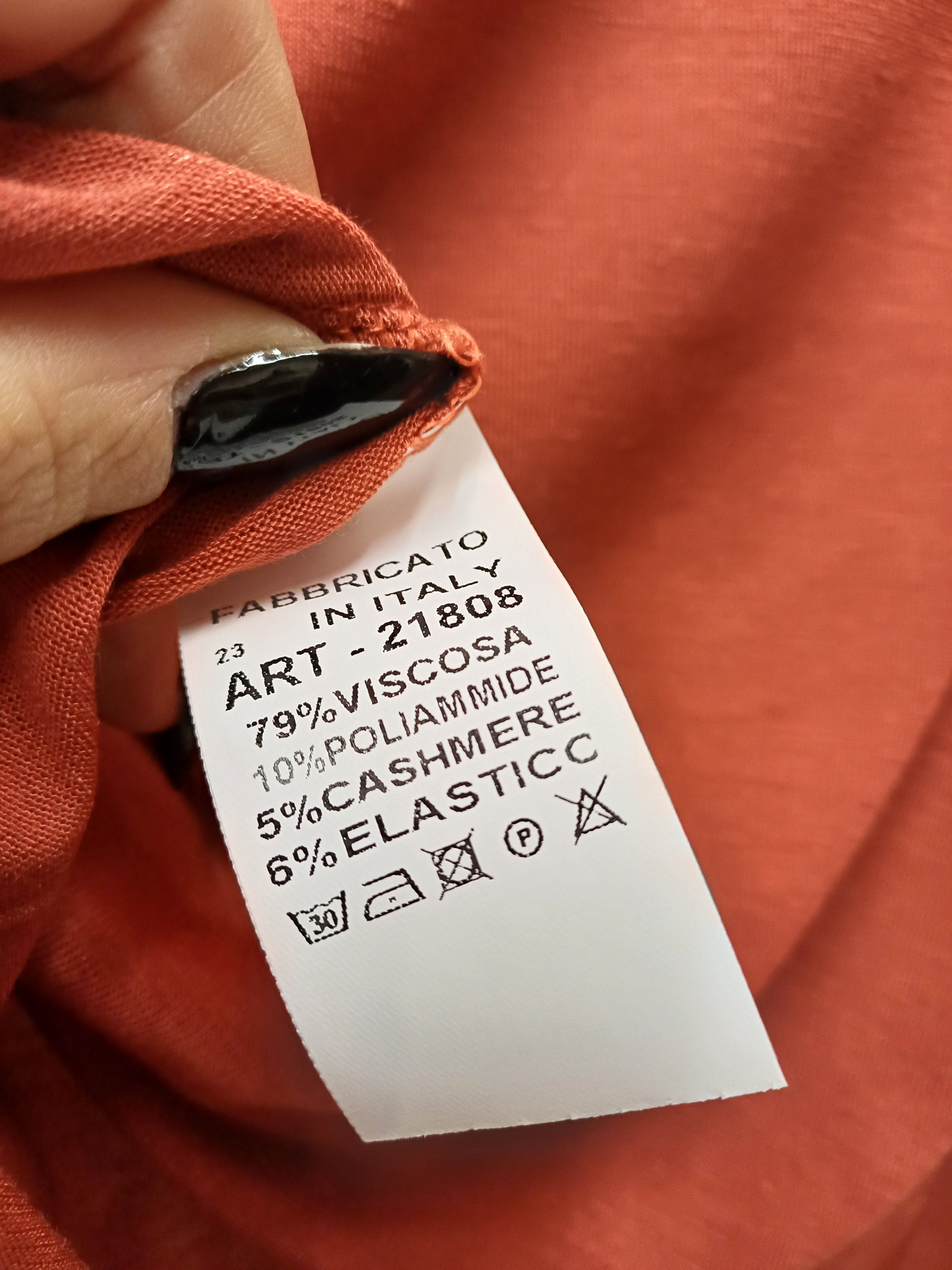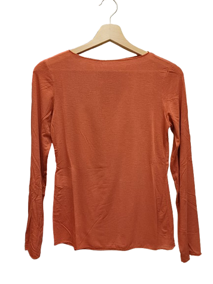 Delicatissima maglietta con 5% cashmere 79% viscosa e elastan, manica lunga, scollo piatto taglio vivo, semitrasparente, un capo basic molto 90s da utilizzare sotto i maglioni per non sentire il pizzichio oppure sopra gonne affusolata senza reggiseno per un effetto kate moss, elasticizzata veste fino la 46