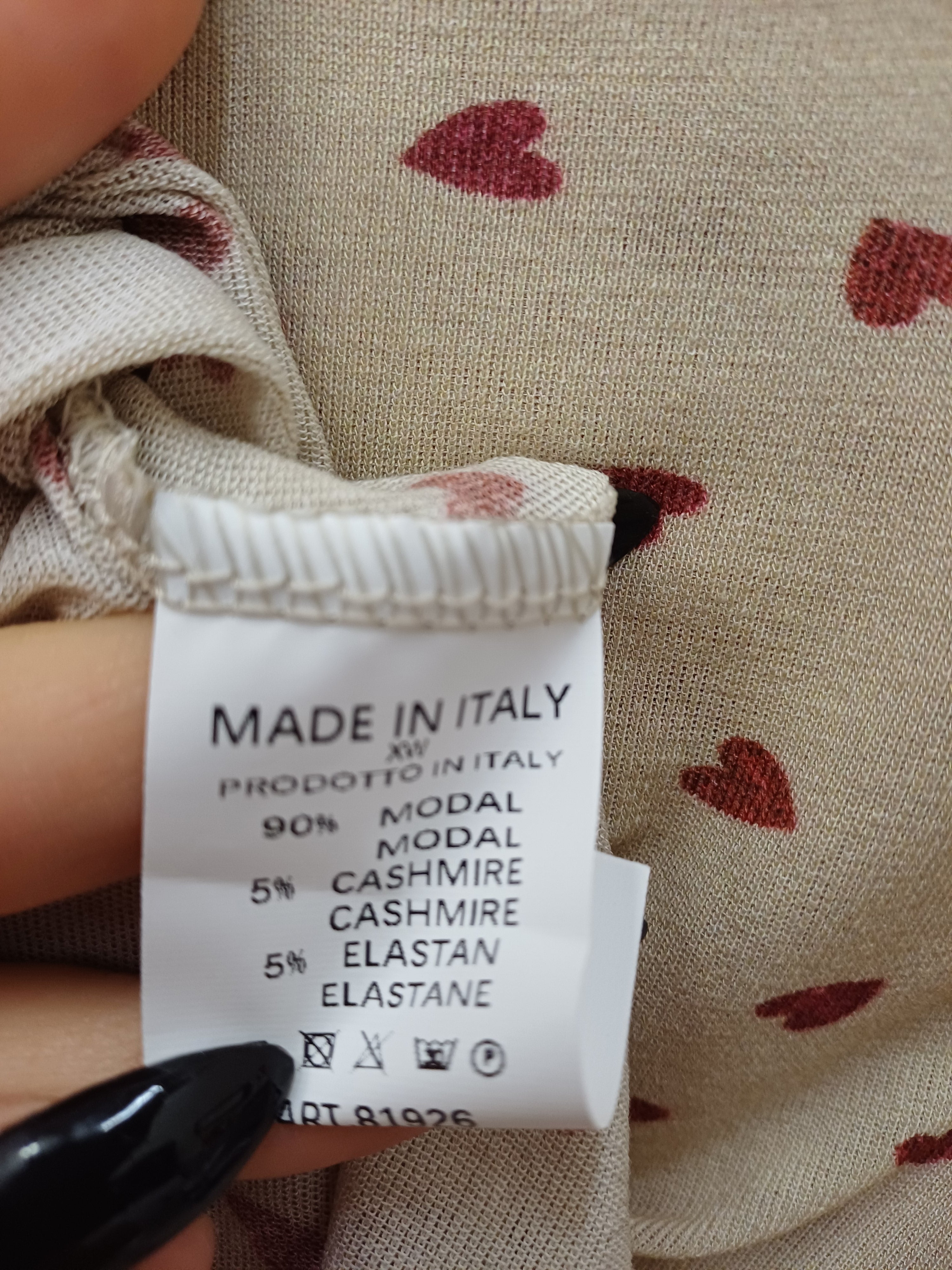 Delicatissima maglietta con 5% cashmere, manica lunga, scollo piatto taglio vivo, semitrasparente, un capo basic dolce da utilizzare sotto i maglioni per non sentire il pizzichio oppure sopra gonne affusolata senza reggiseno per un effetto kate moss, elasticizzata veste fino la 44