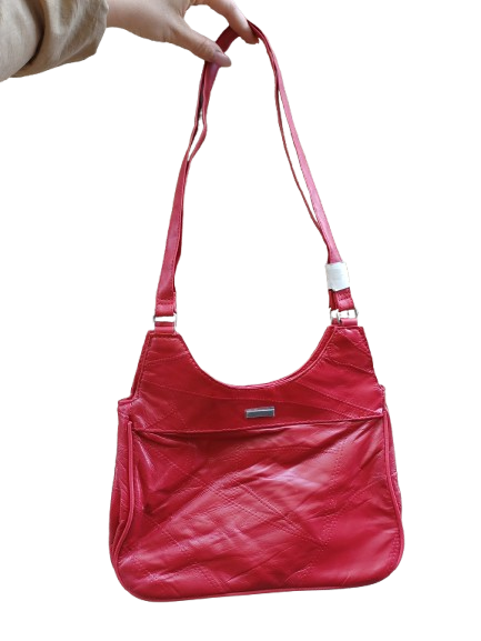 Borsa in pelle fiderata, mai usata, color rosso scarlatto, anni 00, bella per lui e per lei, per look minimal, mefiopiccola ma grintosa
