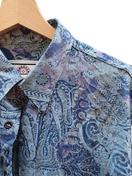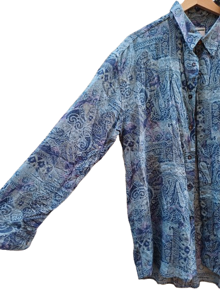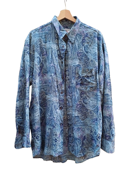 Maschile, fit ampio, colori sui toni del azzurro cielo con pattern etnico, folk, bella tutto l'anno, sia sopra tshirt che pantaloni corti o sotto maglioni e cardigan, ovviamente sia per lui che per lei, viscosa, fresca e casual ma pezzo unico vintaggione