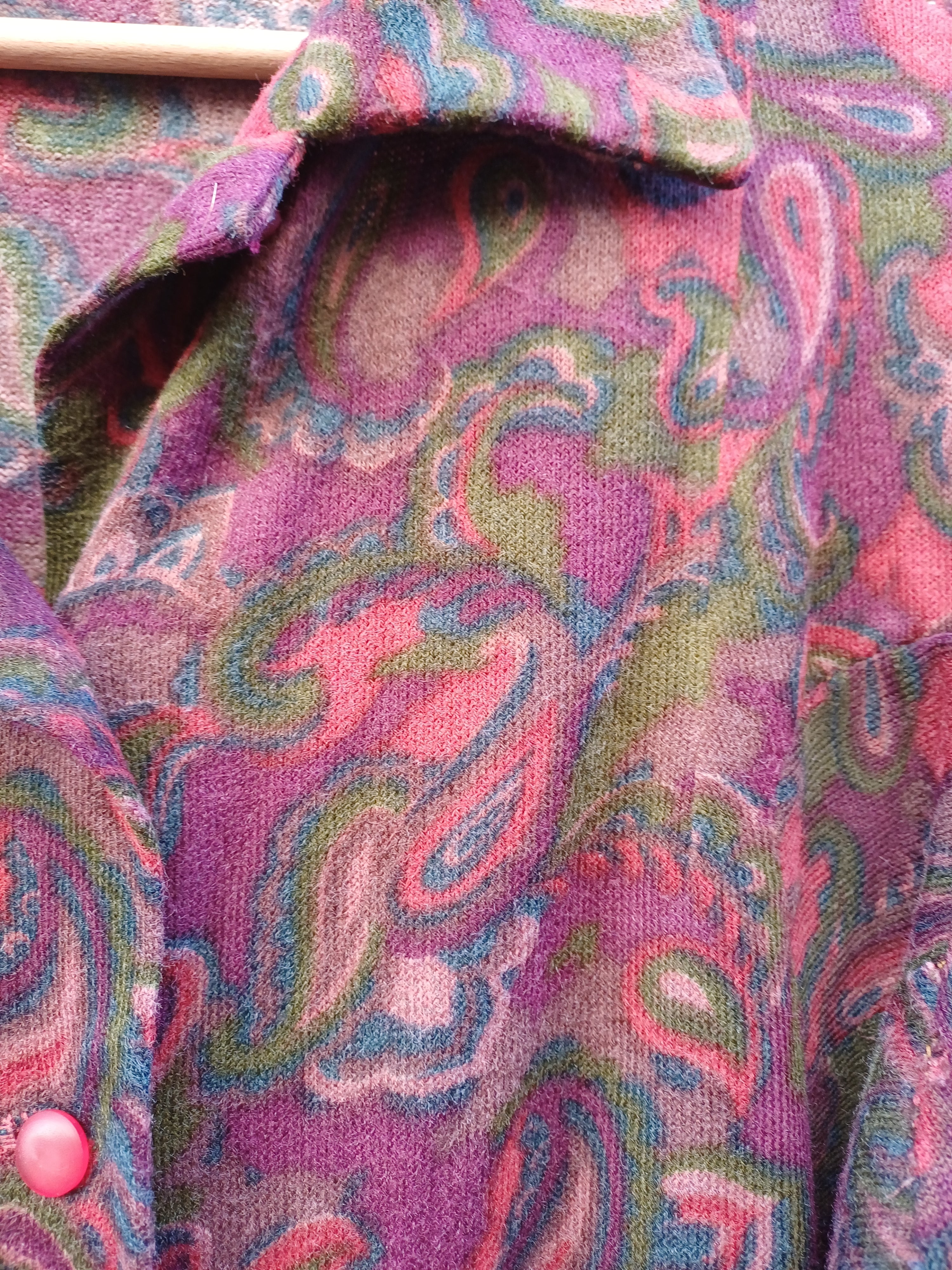 Camicia in maglina, fantasia kashmir in lanetta sartoriale anni 70, calda comoda taglia xxl, abbinabilissima grazie a tutti i colori presenti nella fantasia