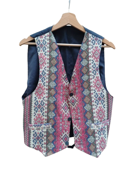 Gilet maschie, in cotone sartoriale, cotone, pattern folkloristico dietro presenta un piccolo difetto, come da foto zoom (5) bello per lui che per lei